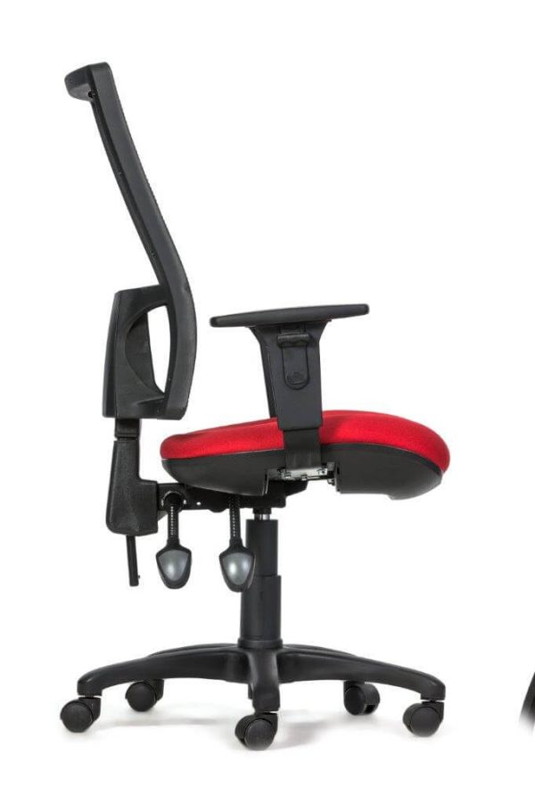 כיסא משרדי דגם טופז ידיות מתכוונות מבית ריהוט משרדי רונן גינת. כיסא מרופד, מגוון צבעים. מנגנון סינכרוני, ידיות מתכוונות. 2 מנגנונים לכוונון זווית גב, וגובה כסא. ריפוד בצע שחור. אפשרות תוספת בצבע בד מקטלוג אופק או אביב.