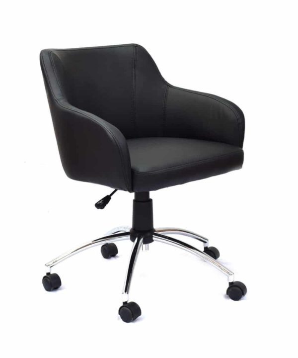 ריפוד דמוי עור שחור, מנגנון סיבוב וגובה, בסיס ניקל.