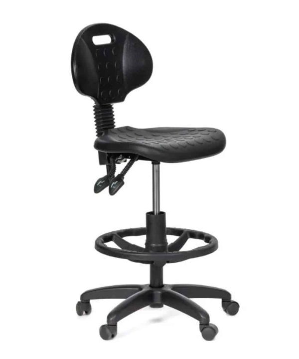 כיסא בר דגם דניאל מבית ריהוט משרדי רונן גינת מושב פלסטיק במגוון צבעים. שלד אלומיניום. צבעים: שחור, לבן, אפור גרפיט, כתום, כחול, אדום. מתאים לשילוב במטבחון.